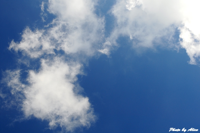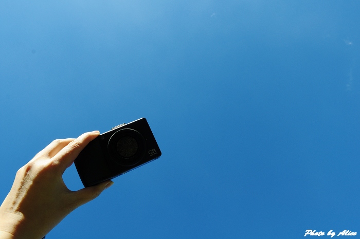 【愛麗絲】我雖然愛搞怪,但是還沒有這麼無聊,當雲朵漸漸飄離,天空像是一塊乾淨的藍色的布,於是想把天空當成攝影棚,拍拍那在天空中的GRD(後來發現很難拍,單手拿單眼,好像在練舉重,差點抽筋)