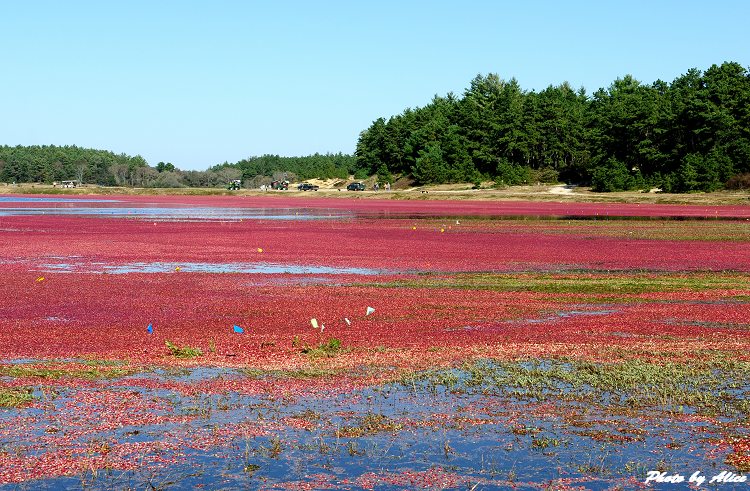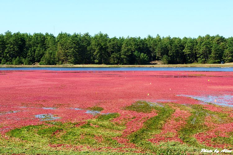 壯觀的蔓越莓田,不是買了門票走進去就看得到的,需要搭校車並穿越森林,第一次搭小學生的校車,感覺很新鮮,而當那一大片蔓越莓『海』出現在眼前,真的叫人大開眼界,『哇!哇!哇!』真的就是這樣的反應,像是一個湖泊被染成了紅色似的,成了一片名副其實的『紅海』。