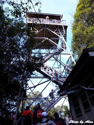 #16 瞭望台上的視野展望遼闊,紅葉映稱著綠色山林和鳶嘴山,難怪吸引這麼多人