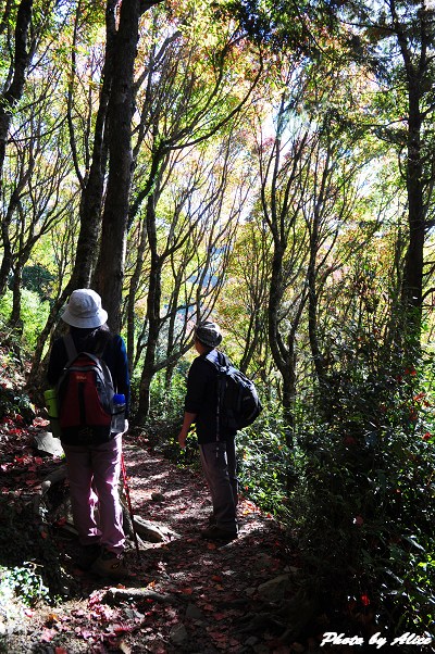 再一次的山林之約,有老朋友(Phate、懶骨–因身體不適只能先行下山),也有新朋友(阿裕、藤木、千蕙),為的是那上山的快感,為的也是那迷人的紅葉世界。肖想許久的鳶嘴與稍來這兩座山,今年,終於有伴可以一起同行,雖然久聞鳶嘴山不是好爬的山,但,我想我一定是被山林與紅葉的美給迷惑了,而忽略了鳶嘴山的挑戰性,登山杖是帶了,不過,放在車上沒帶上山;護膝,想了好久,終究還是留在家裡,於是,一趟鳶嘴稍來走完,我的兩隻腳膝蓋都瘀血了&