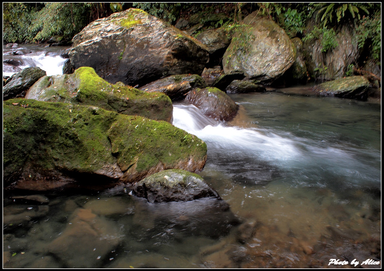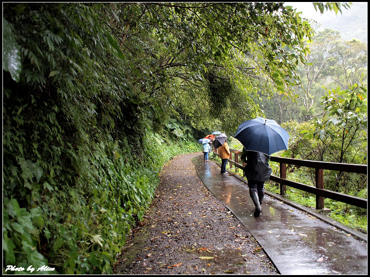 不過這來回10公里左右的路程,路不難走,剛剛好,不太累,又能讓身體動一動,而今天的目的地是個世外桃源,可能是天氣的關係,一個人也沒有,我們,獨享了這一片寧靜山林之世外桃源,即使,天空依然下著雨,但坐擁這片大自然,聽聽那自然的聲音,還是讓人開心的想擁抱那天空中落下來的一滴一滴的小雨滴。