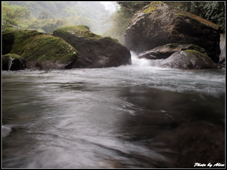 明知天氣不好,還是央求歐陽帶我去哪走走,臨時拉了Belinda同行作伴,免得來回開車路程一個人過於疲累,我們走了由烏來內洞森林遊樂區進入的『內洞林道』,要到林道要先經過內洞瀑布,這裡是許多人會來拍斜射光與瀑布的著名景點地,也是以前大學時代社團舉辦過的娃娃谷活動地點,想不到以前沒有機會跟社團一起來這裡,反倒是現在才來體會和回味。