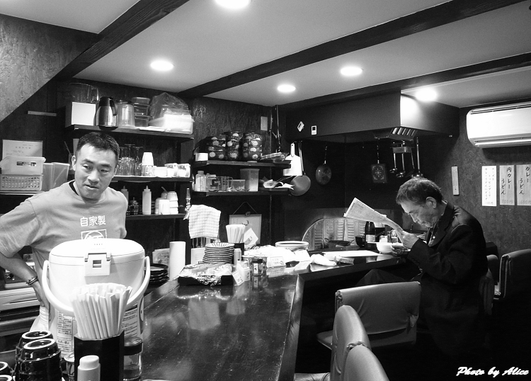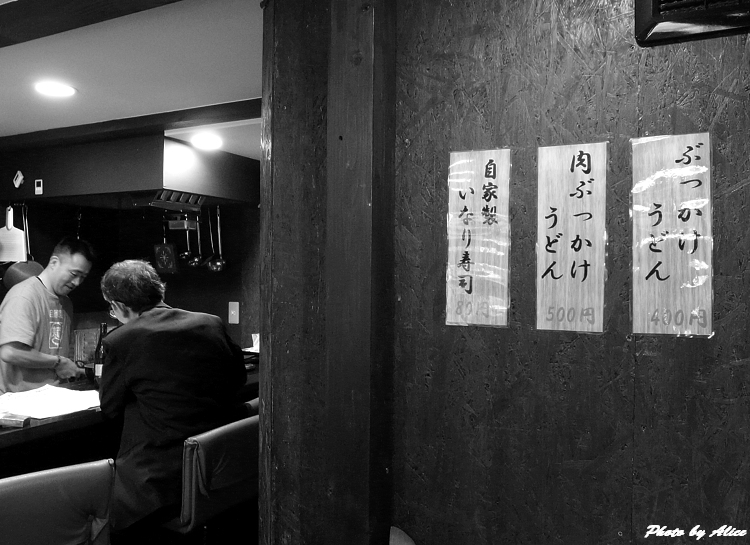 老闆很親切,不催著點餐,有點酷卻又有著親切的笑容,他認真的煮著烏龍麵,我隨意的在店裡拍了幾張照片,嚐了一口烏龍麵和自製的豆皮,烏龍麵的彈性Q又可口,第一口就叫人驚艷,真的好好吃!