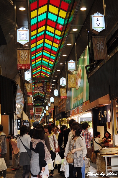 到京都旅行,不管是上網找資料或是翻閱旅遊書籍,總有許多人建議一定要去『錦市場』,雖然對於一般觀光客的行程不是太有興趣,不過,偶爾也還是想要看看大家眼中的京都是什麼模樣,於是那天傍晚,抱著好奇與朝聖的心情,從Daimaru大丸百貨走到了錦市場。