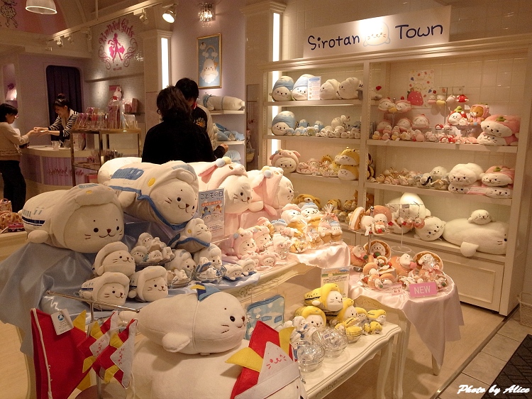 本來想要打退堂鼓找地方休息了,又想起家裡的人交代想買的物品好像沒有一樣有買到,只好提起精神再繼續走走逛逛,卻沒想到這會兒,不只把清單上的物品一次買齊了,還在盡頭處發現了我們家Charlene瘋狂喜愛的小海豹專賣店,在日本,許多店家是禁止攝影拍照的,因為看到這可愛的小海豹店太開心了,跟店員用僅能溝通的一點點英文,千拜託萬拜託,終於願意讓我拍一張照片,只因,我想,我們家的小朋友看到小海豹的店都會開心的尖叫吧!(結果我們家Charlene看到照片後跟媽媽說,下次可不可以也帶她去日本看小海豹……)
