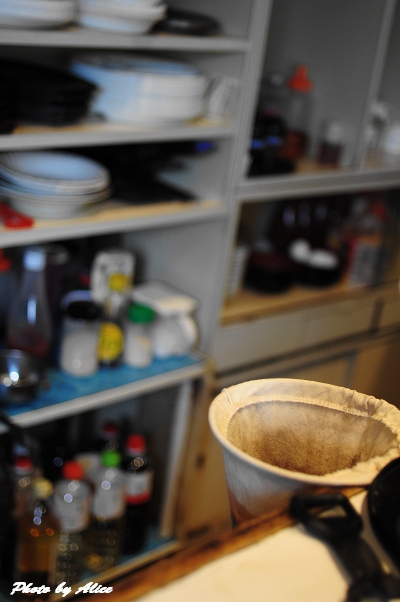 老闆認真的煮著我要的咖啡,這才發現,這裡的咖啡不是義式咖啡機,不是虹吸式,而是好久沒看到的法蘭絨濾網,不知道為什麼,就是多了一分懷舊,就是多了一分親切,雖然只是一杯咖啡,但卻一點也不馬虎,在咖啡端上桌的那一刻,我莫名的笑了,是開心和溫暖吧!(後來才知道,原來用法蘭絨濾布來煮咖啡,有許多清洗和保存的學問。)