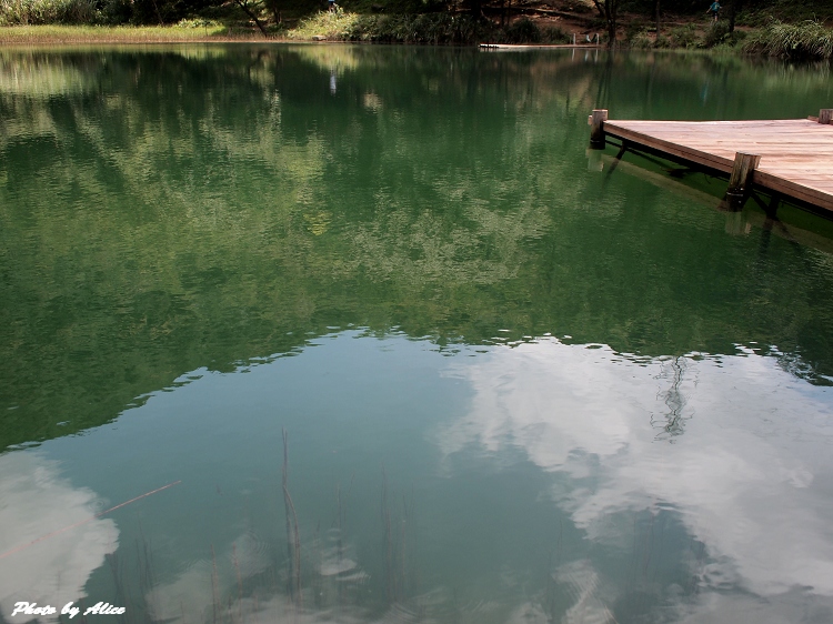 一開始聽到要去新山夢湖時,心裡還不禁存疑那不是條200公尺就可以走到的步道嗎?不過,我果然是想太多了,既然是要爬山運動活動活動筋骨的,我們自然走的就不是之前所知道的那條五分鐘大眾步道,而是由公路旁的保線路進入,一路上走在森林裡,雖然溫度依然高,不過還算舒服,流流汗,新陳代謝排排毒也不錯。