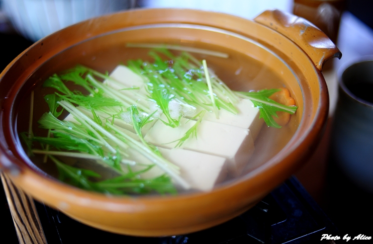 那還不如來去~吃到飽的火鍋店,一盤豆腐放鍋底,煮上一鍋海鮮、蔬果後,在用餐八分飽後,在取出燉了久久的豆腐來,那其中的滋味…只有嚐過的人才能體會那奧祕!這樣的花費,想必相較那京都的〝湯〞豆腐,絕對是有過之,絕無不及…且價格更是那〝湯〞的九牛一毫啊!