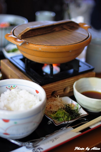 運氣不錯,被安排在靠窗戶的座位,在等候餐點的同時還可以欣賞窗外的景色,四月底的京都,雖然仍帶有涼意,但是到了中午時刻,炙熱的陽光還是曬得讓人有點吃不消。