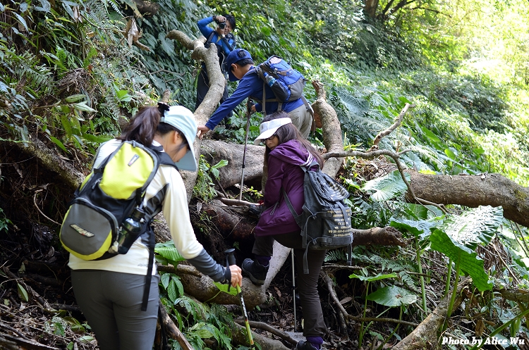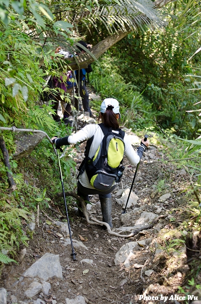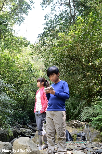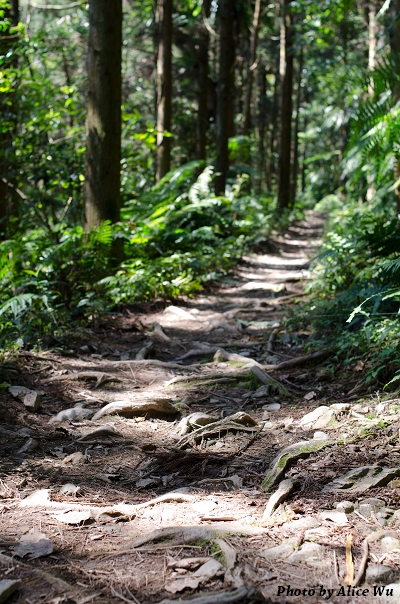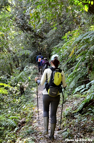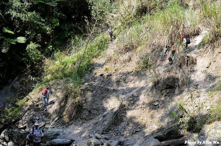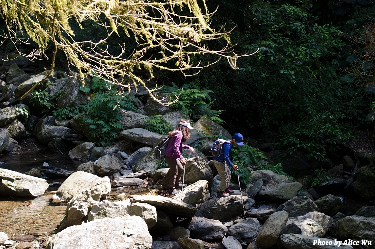 由於時間的關係,我們當天只走了從登山口算起約5公里左右的路程,到達第一個溪谷時休息午餐,這條古道很好走,雖然偶有崩塌或攀爬的路段,但並不吃力,走在林間也很涼爽舒服。