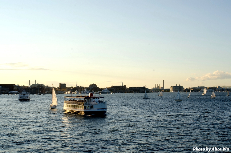 她說,搭船去看Boston的夕陽好嗎?同時還可以看看Boston的城市夜景!