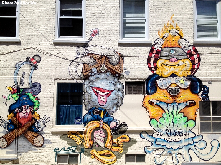 散步在這個濃濃法國風味的城市裡,每一條巷弄、每一個轉角,可能都是一個驚喜。發現落腳處附近的街道裡,滿是各種顏色的小房子,活像是大型的彩色調色盤;發現這個城市裡的人很喜歡畫畫,不只在老城區裡可以見到街頭畫家,即使,走在一條不起眼的巷弄裡,留心看,你會發現,牆上到處都有不同的美麗塗鴉。
