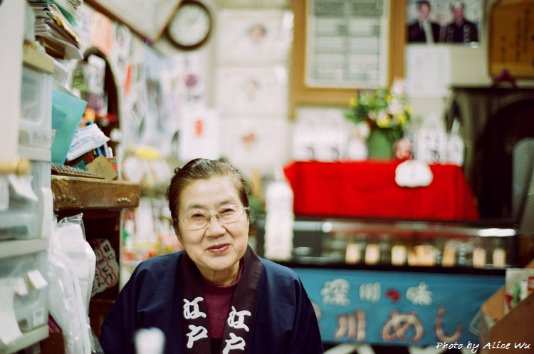 雜貨店奶奶很熱情的用日文招呼著我們,可惜不諳日文的我們無法與奶奶互動,但勉強知道奶奶在介紹店裡的商品,奶奶知道我們是從台灣來的之後,指了指牆上的海報介紹,說這個「深川めし」料理包是台灣人來最愛買的商品了,因為有英文的介紹,看了一下,原來是裡面有很多種不同的菇,煮飯時一起加進去就行了。