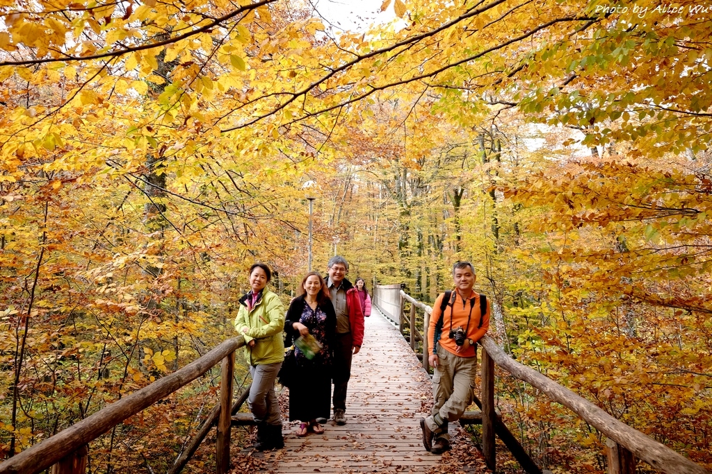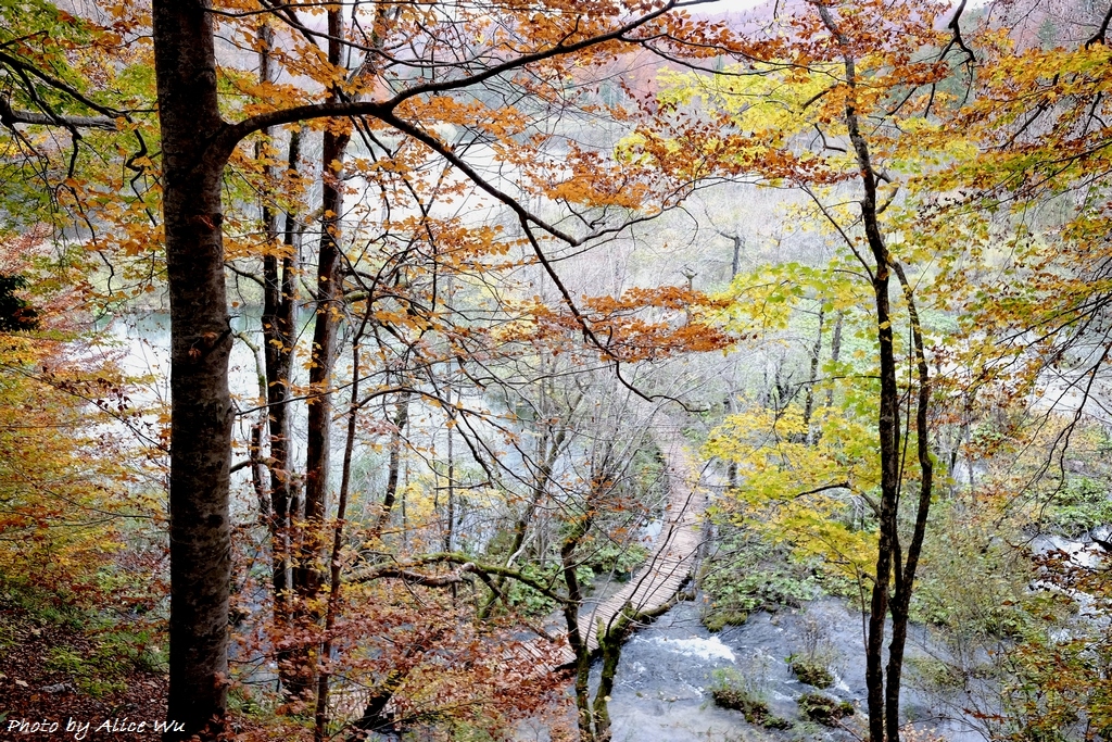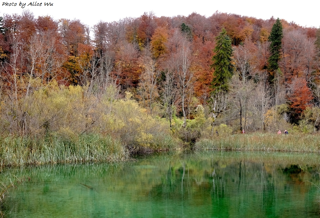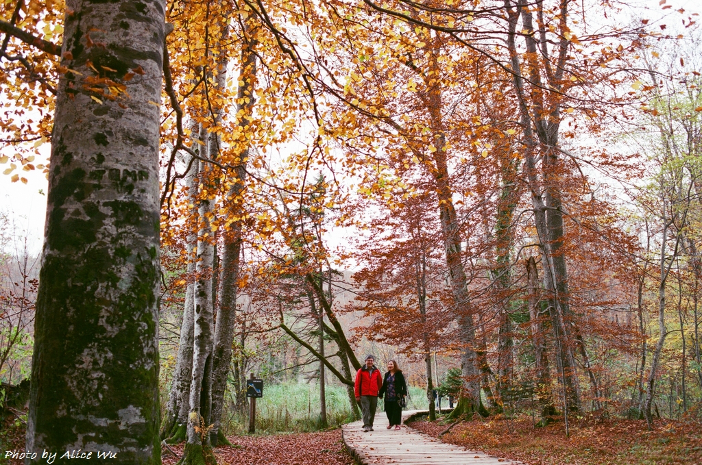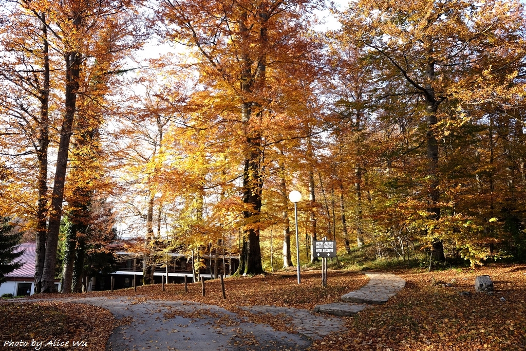 不免俗的,十六湖國家公園當然也是我們的重點行程之一,特意挑在十月下旬來訪,意圖很明顯,當然就是希望能夠親眼見見十六湖國家公園的浪漫楓紅,光是想像著走在被色彩包覆的森林步道中,就覺得美麗又浪漫到了極點。不過,想像歸想像,期待歸期待,我們心裡都很明白,大自然的季節交替,不是人類可以控制和算得準的,而這個定律自然不會只適用於我們這幾個人熟悉的瑞典、英國、或是加拿大,克羅埃西亞也是同理可證,要堵到秋天的楓紅,大概就跟要中樂透頭獎一樣機率不會太高吧!特別是我們的機票不可能說訂就訂,異國旅行不能說走就走,不過,雖然我們此行不算遇到最美的秋天景色,但一片黃澄澄的世界,和秋高氣爽的舒服天氣,還有一群好朋友一起在森林裡玩耍,真的是一件非常開心的事情!