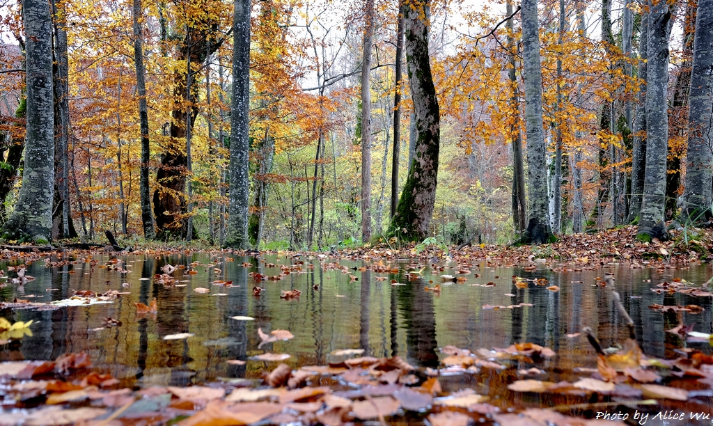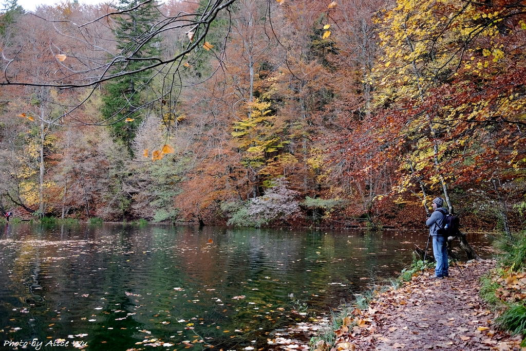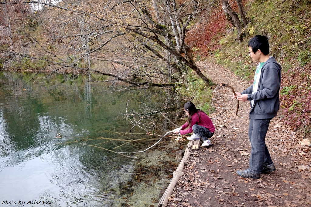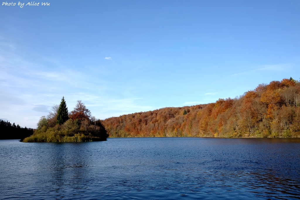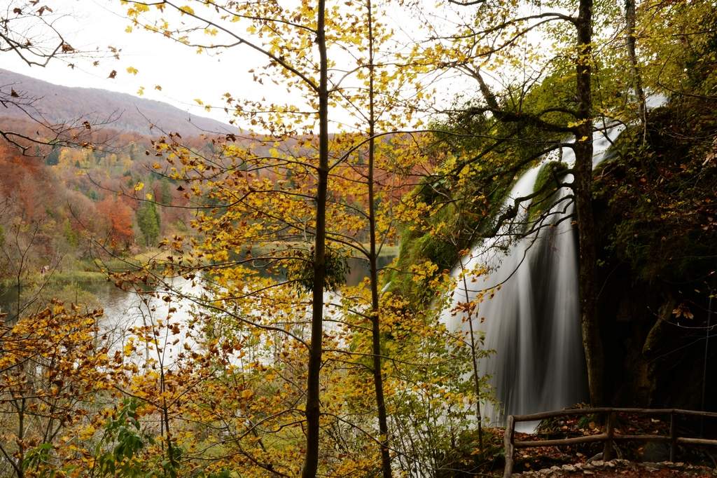 不免俗的,十六湖國家公園當然也是我們的重點行程之一,特意挑在十月下旬來訪,意圖很明顯,當然就是希望能夠親眼見見十六湖國家公園的浪漫楓紅,光是想像著走在被色彩包覆的森林步道中,就覺得美麗又浪漫到了極點。不過,想像歸想像,期待歸期待,我們心裡都很明白,大自然的季節交替,不是人類可以控制和算得準的,而這個定律自然不會只適用於我們這幾個人熟悉的瑞典、英國、或是加拿大,克羅埃西亞也是同理可證,要堵到秋天的楓紅,大概就跟要中樂透頭獎一樣機率不會太高吧!特別是我們的機票不可能說訂就訂,異國旅行不能說走就走,不過,雖然我們此行不算遇到最美的秋天景色,但一片黃澄澄的世界,和秋高氣爽的舒服天氣,還有一群好朋友一起在森林裡玩耍,真的是一件非常開心的事情!