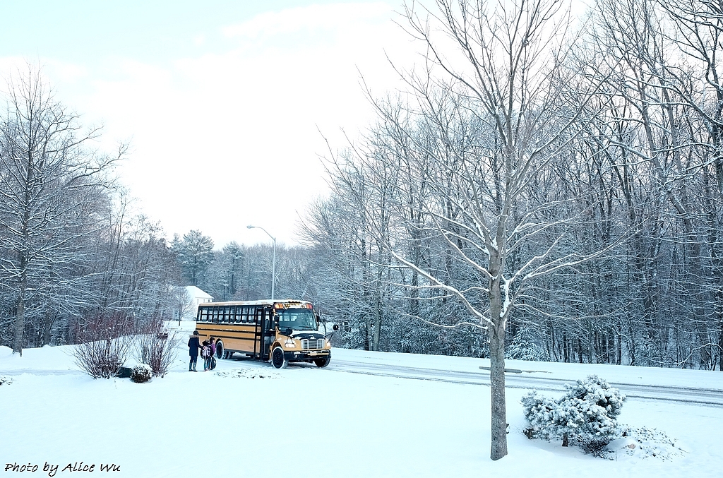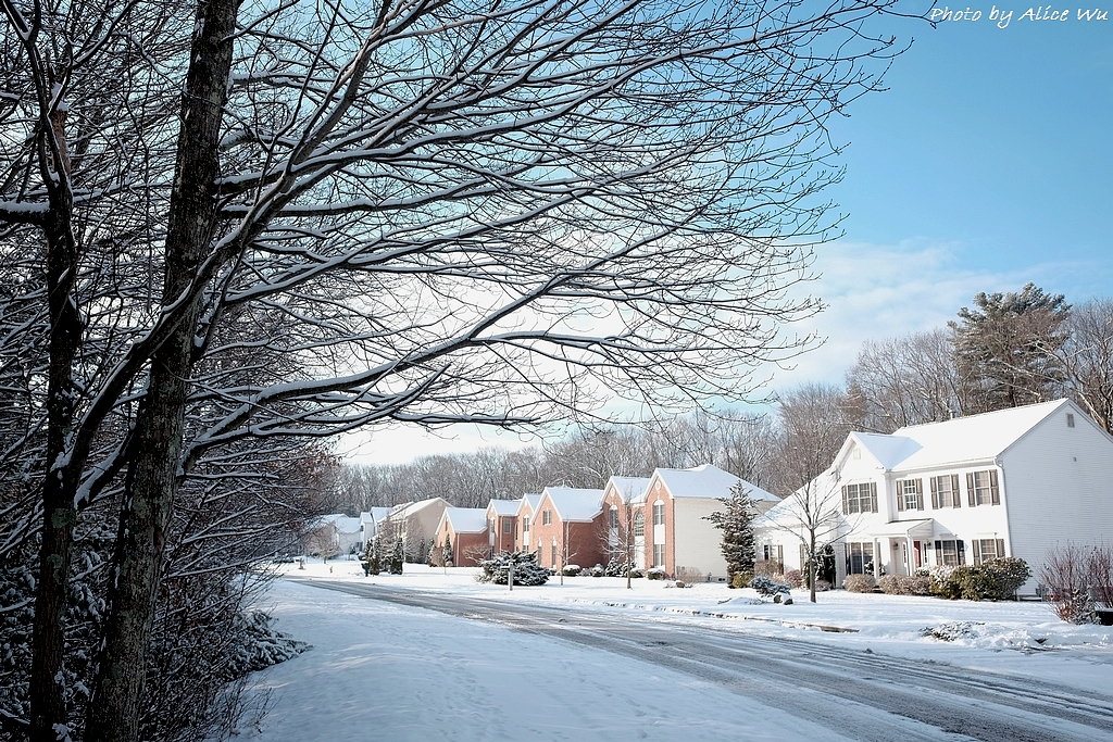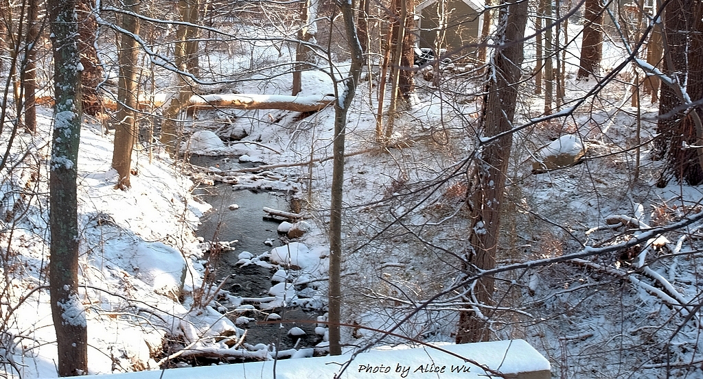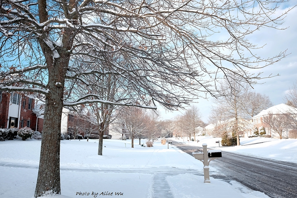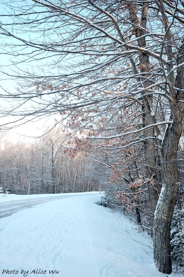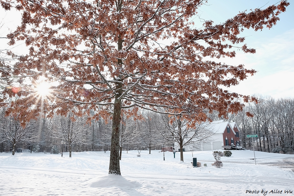 那是我在美國第一場雪的隔天早晨,起床後從窗外看到那片銀白色的世界,陽光灑落在潔白的雪上,美麗耀眼的叫我睜不開眼,快速的解決了我的早餐後,立刻著裝背起相機投入那一片雪白的世界。