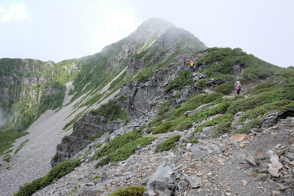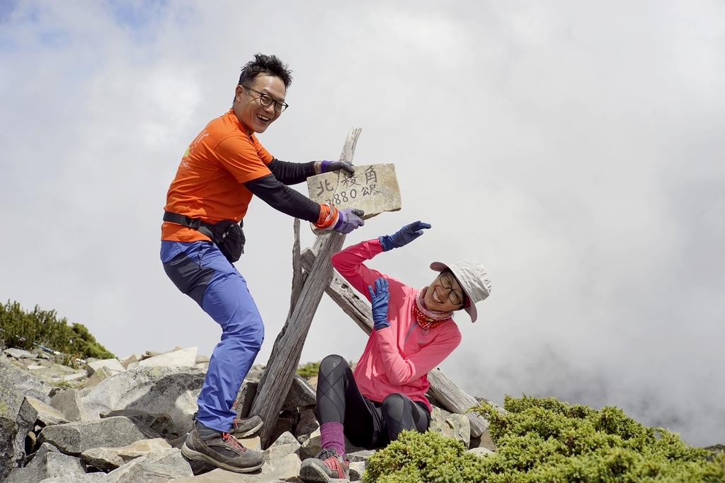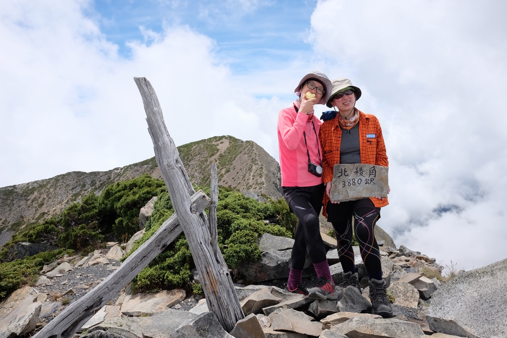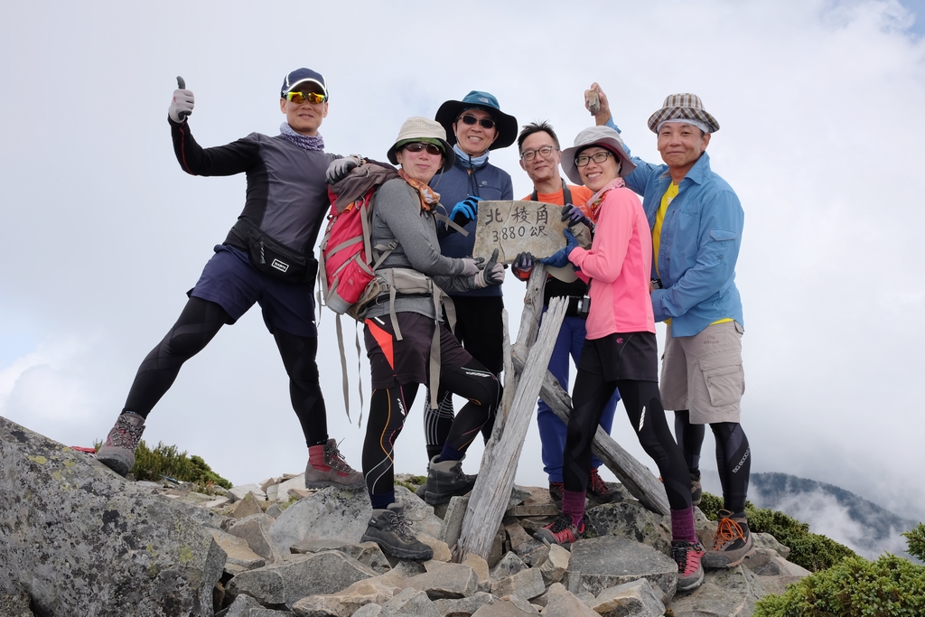 完成雪山主峰的雀躍、大夥在山頂玩瘋了的開心、周圍群山的壯闊山勢,真的很容易讓一個人『人來瘋』的失去平常會有的理智,又或者是,只有我。前輩們說,第二天只走雪山主峰未免太過輕鬆簡單,這麼早回 369 山莊沒事做更無聊,不如加碼來去北稜角吧!(心裡的OS:怎麼我最近的山行都有加碼的戲碼出現?)這一次,我居然毫無掙扎的說【好啊】。