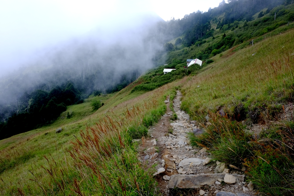 老實說,走起來雖然有點膽戰心驚,但,真的還蠻好玩的(這句話應該要隱藏起來),這條路線,除了能夠體驗聖稜線的壯觀美麗之外,還有多種不同的地形路線,很有趣,絕無冷場,時間充裕的話像我們這樣邊走邊玩,會一路充滿笑聲的忘記身體的疲憊,真的是值得推薦的路線,在走出水源地森林快要回到 369 山莊時,其實,還真有點戀戀不捨,因此,沒有跟著大家直接回山莊,反倒在森林口處多待了一下,只為想多看這美麗的群山一眼,只為想多呼吸一口山上新鮮的空氣,只為多享受一下大自然的靜謐,也為讓自己好好沉澱一下這一趟山行的複雜情緒!
