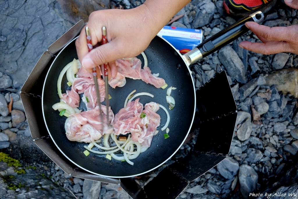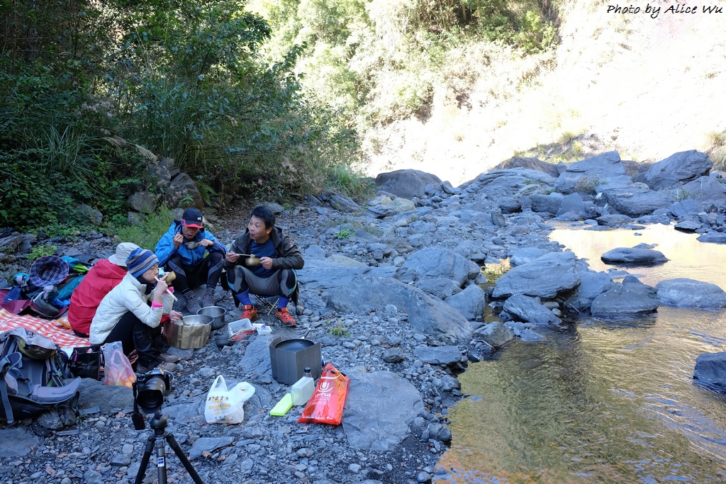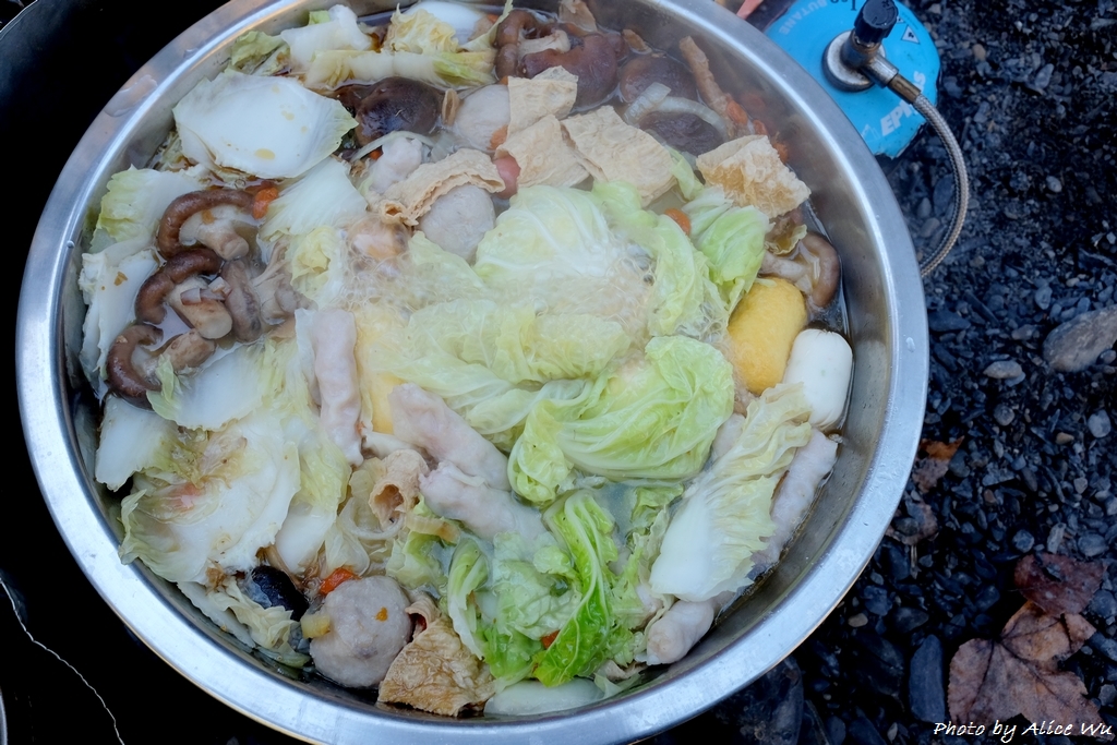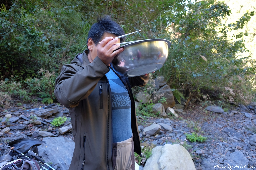 有健忠玉瑩特別準備的猴頭菇火鍋和大臉盆,還有好手藝的歐陽堅持在山上吃火鍋肉片也得先炒過才能進鍋,這麼樣的午餐,成了山林中最奢華的享受,那一臉盆的火鍋,從一開始大家的擔憂究竟要怎麼裝進肚子裡,到你一句我一句太好吃了,東夾一點西夾一點,這麼一大鍋的火鍋,居然也就這樣被我們五個人通通裝到肚子裡,一滴不剩,套句健忠說的,我們是提前來山上圍爐的!