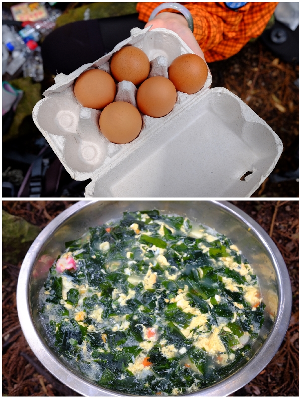 <— 居然有人揹了蛋上山,這蛋,充滿了我大學時代山林裡的回憶,所以這午餐特別甜美