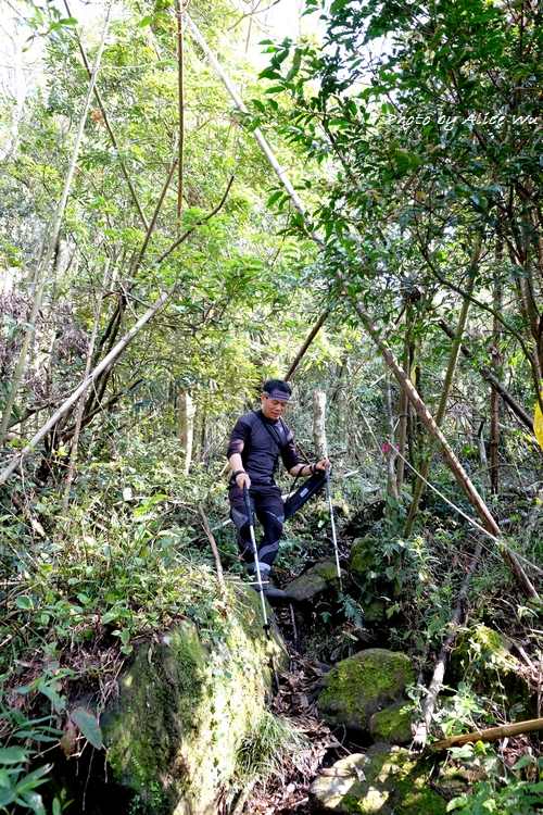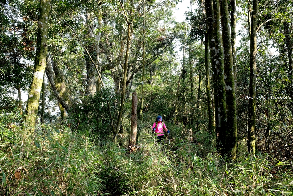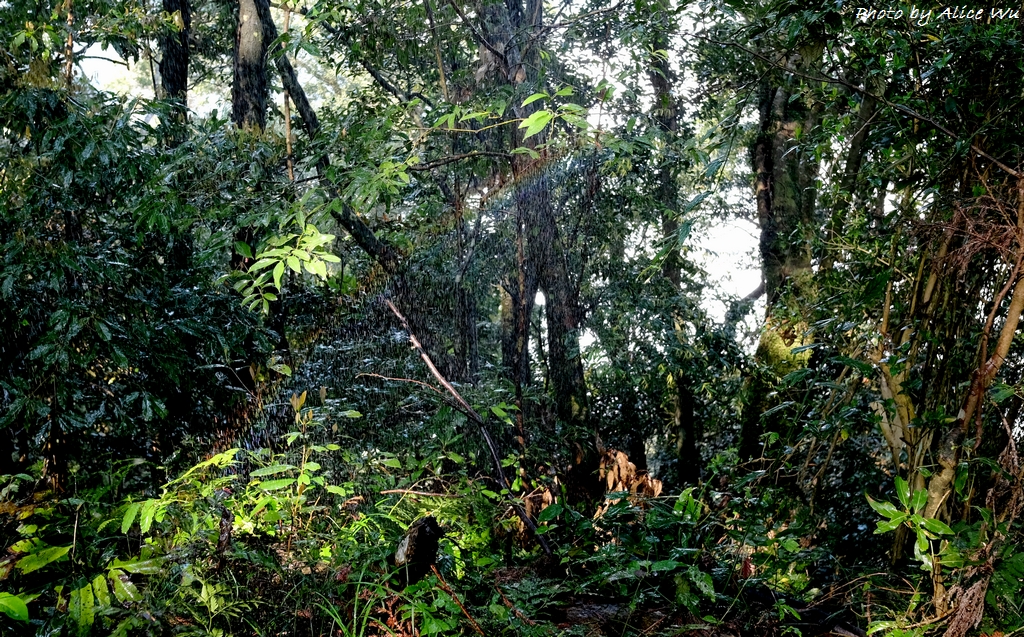 這回因為身體的關係,我決定大部分時間按照自己的步伐速度走,而非像以往總是跟著玉瑩在後面壓隊聊天兼拍照,這也是另外一個走過的好處,至少對路況稍微熟悉(咦!真的嗎?聽說我好像也是小路痴一個!)哪知,愈走愈陌生,愈走愈沒有信心,即使跟著樹上綁著的布條走,卻還是愈走愈疑惑,路徑愈來愈陌生,愈來愈不清楚,好幾處還都找不到究竟該往左還是該往右,該下切還是該往上爬。