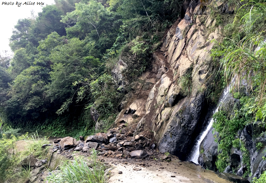 ↓ 回程在林道上遇到小坍方,阻礙了後方的車輛,還好,很快就被排除,上次坐怪手,這次遇坍方現場,這條路線真的不無聊