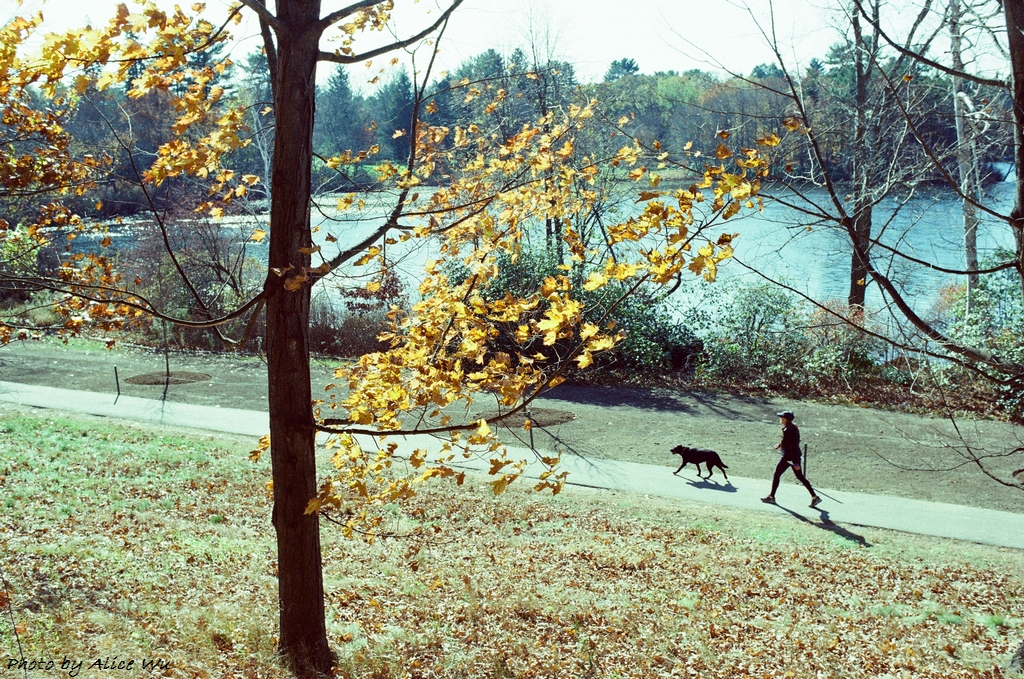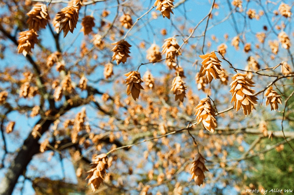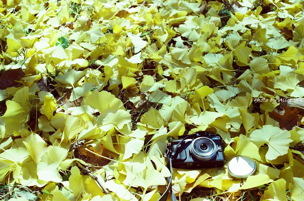 喜歡這樣的秋天,空氣是冷的,陽光是溫暖的,一個人散步是悠閒的,手上有底片相機是幸福的,偶爾抬頭看看頭頂那片藍天,再大口呼吸那不用擔心PM2.5的空氣,有時候就是會這樣莫名的給自己一個微笑。有如此的美景與好心情,就算時間只有短短的兩個多小時,就算走過的路徑和多年前大異其趣,但,也心滿意足了。