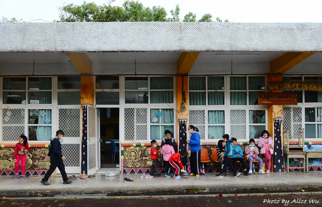 隔天早上,我們跟著阿Van老師來到高士國小,這個國小目前只有26個學生,是個迷你得可愛的小學啊!小小孩的天真歌嗓,不得不說,真的很療癒,坐在教室後方看著孩子們努力的學習排灣族的母語歌謠,心中有很多複雜的感受。特別是有幾個年紀很小的孩子們,還不識字,看不懂歌謠的大字報,但依然努力的記憶著歌謠的歌詞,一句一句的唱出屬於排灣族人的歌謠,看著那幾個孩子唱歌的模樣,讓人有點忍不住熱淚盈眶!
