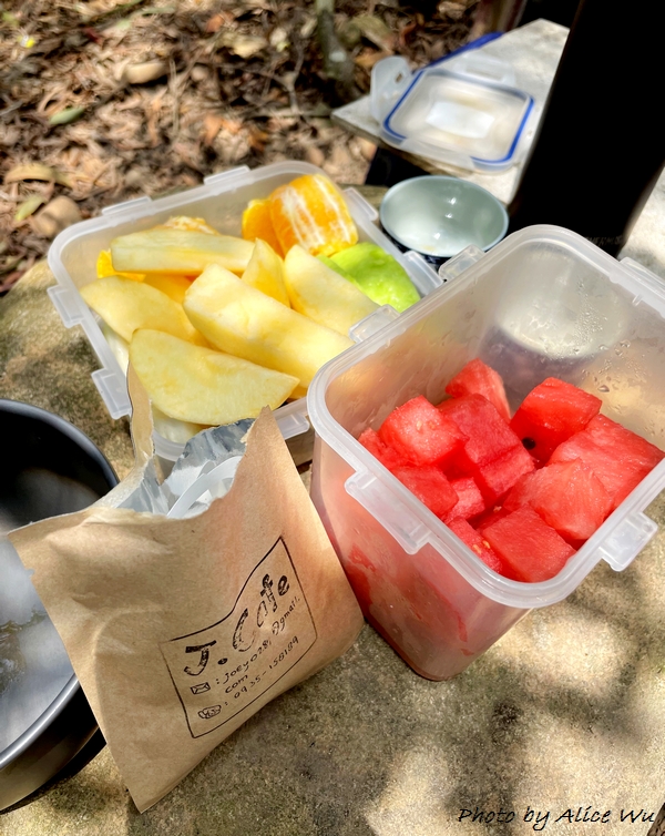 <—– 炎熱的天,到了山頂最享受的是這沁涼的水果了吧!
