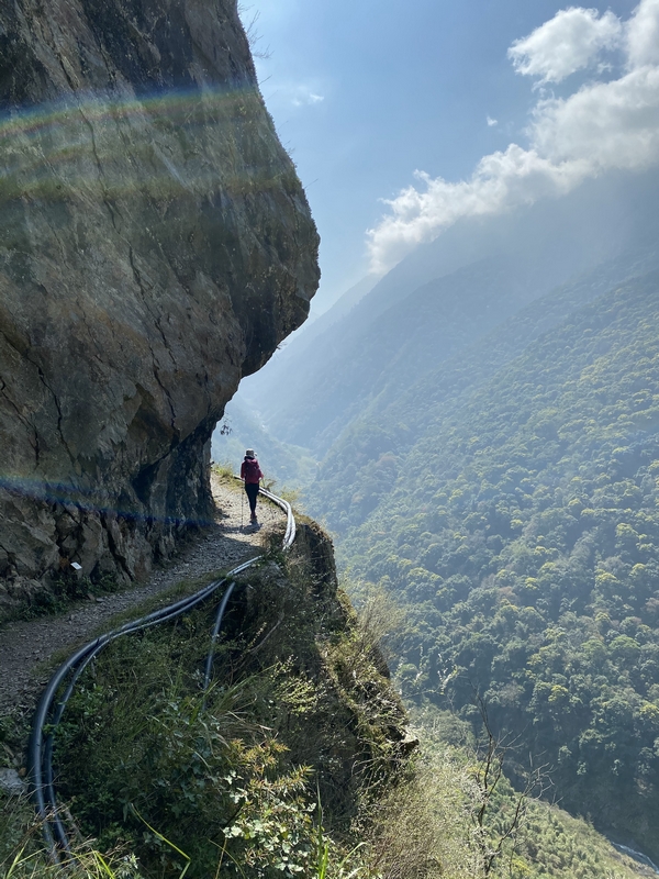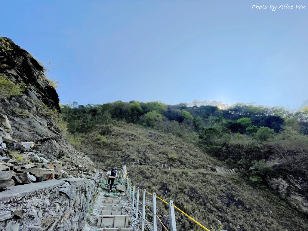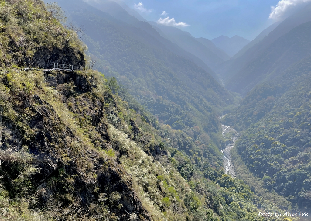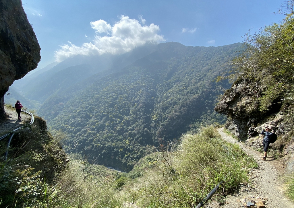 時值三月初,應當是涼爽的天氣,但走在這條沒有什麼遮蔽物的步道,真的被太陽曬到有種已進入夏季的錯覺,還好有壯闊的山谷和山脈相伴,讓人稍稍的忘記那不像三月的溫度,不然可能敵不過太陽的過度熱情而想找個陰涼的地方躲起來算了。