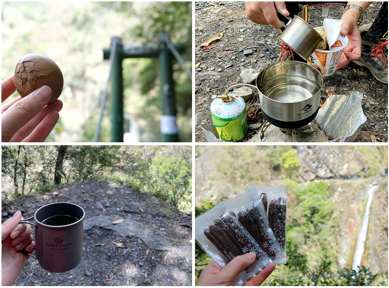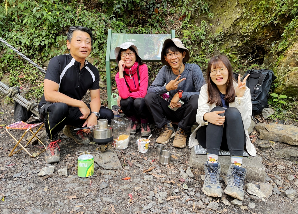這樣走著聊著笑著拍著,就到了雲龍瀑布,這條步道真的很親民,不熱的時候走起來真的舒服,視野和風景又美,來山裡走走路,再找個涼爽的地方野餐一下,是一種會讓人感覺到滿足的生活,很多人覺得這條步道不長,都只準備簡單的行動糧隨意填飽肚子就回程,而我們卻不同,上山,不只是為了賞景走路,更是為了在山上野餐喝茶的那種舒暢和快樂,於是,我們在雲龍吊橋附近找了個涼爽的地方,鋪起我們的野餐墊,享受著我們的午餐、水果、茶和咖啡,看著匆匆來去的人們,除了更享受我們的悠閒之外,也引來不少羨慕的眼光。