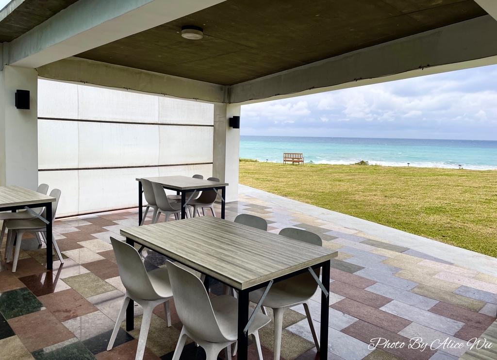 ↓ 也可以在庭院吹海風看海,同時享用早餐,這樣,可以與海面對面接觸,離海也更近了點