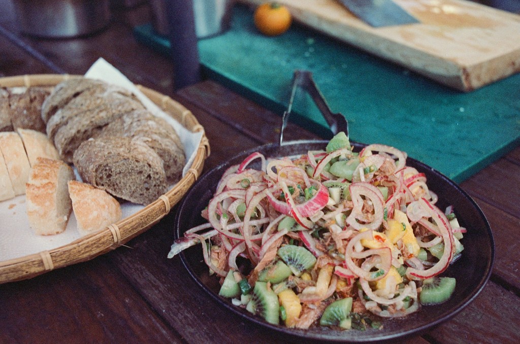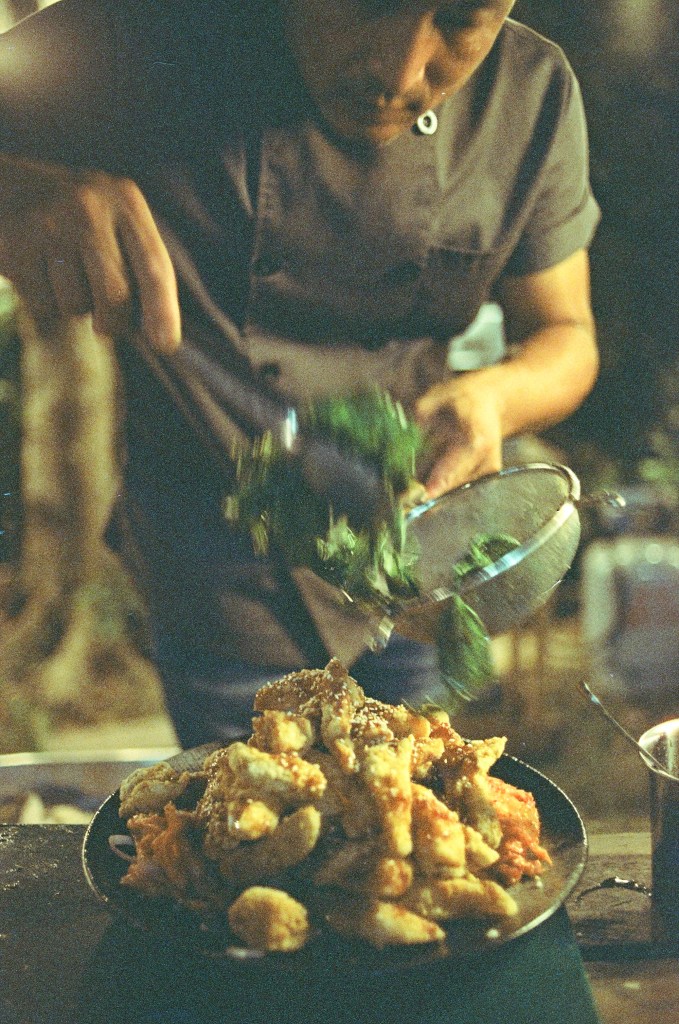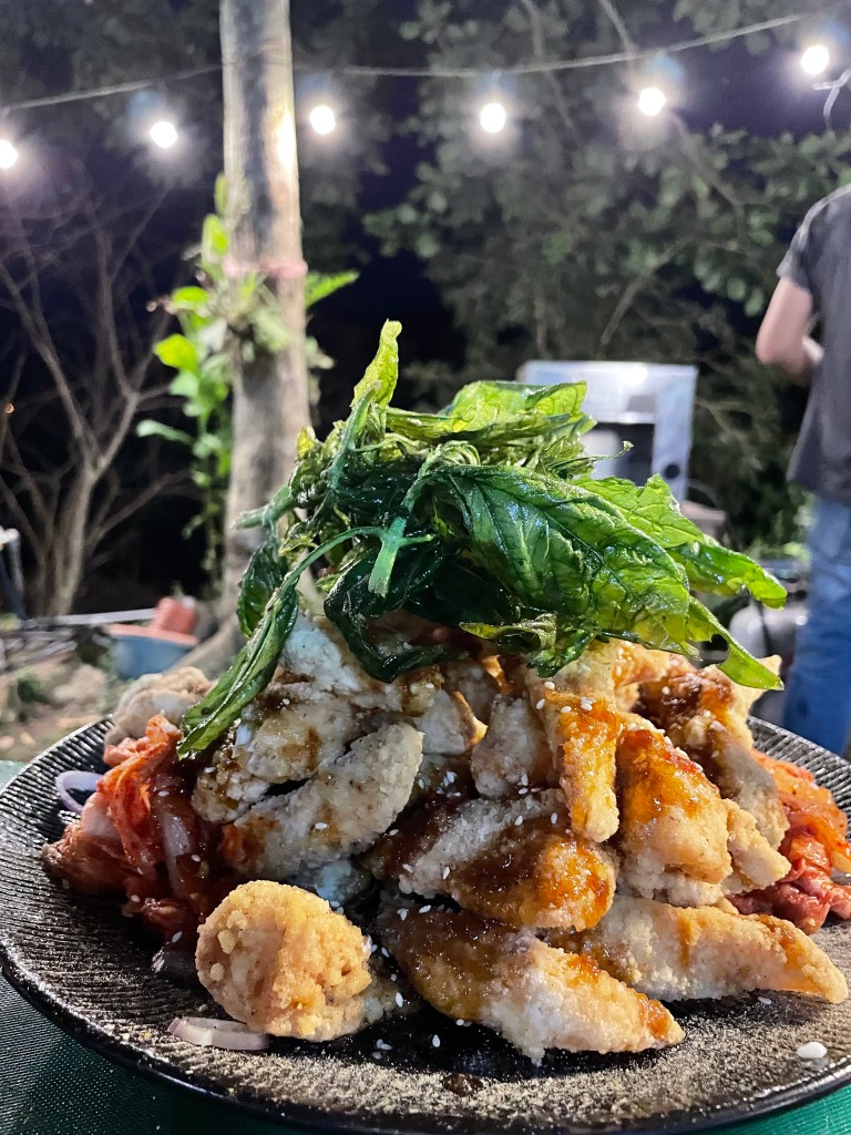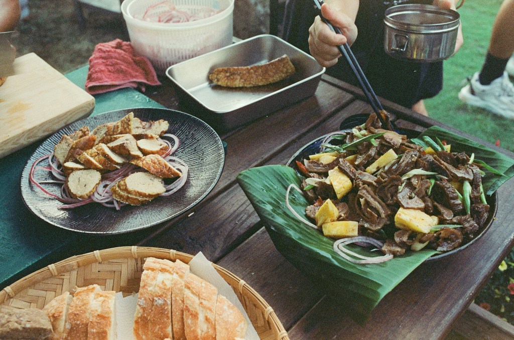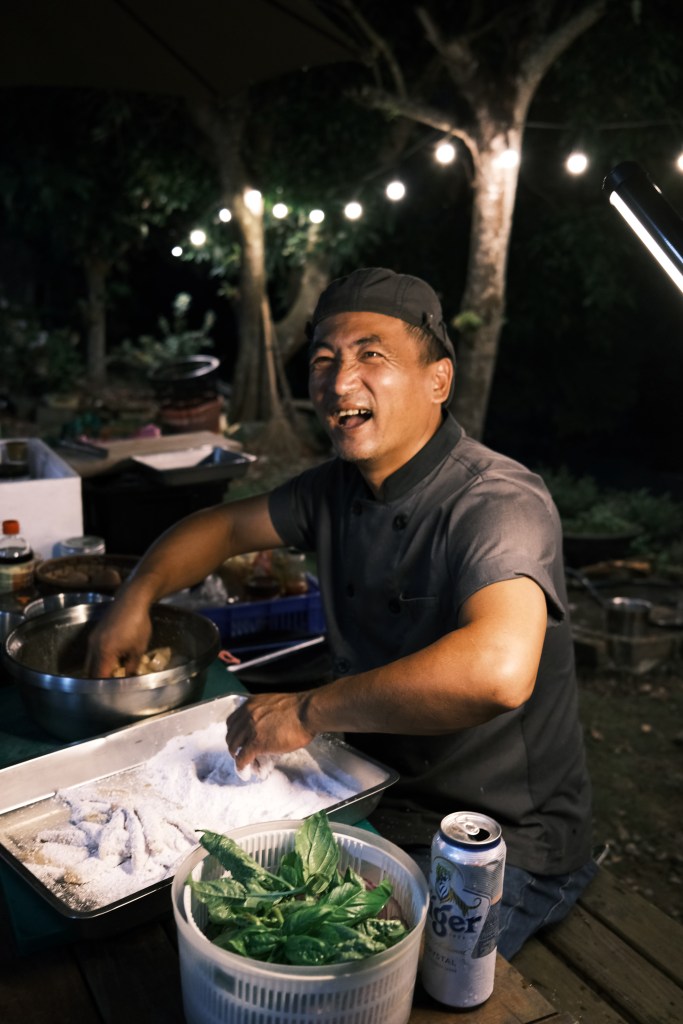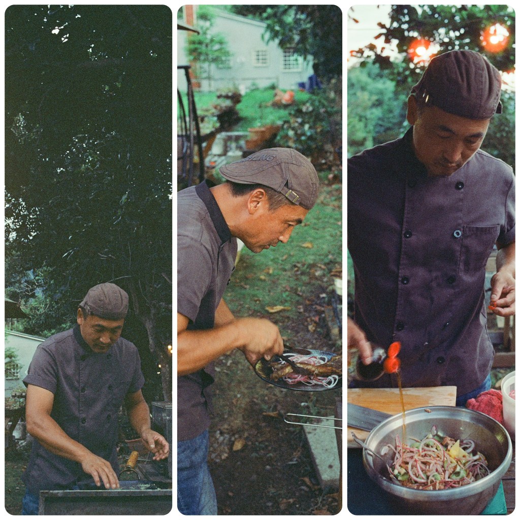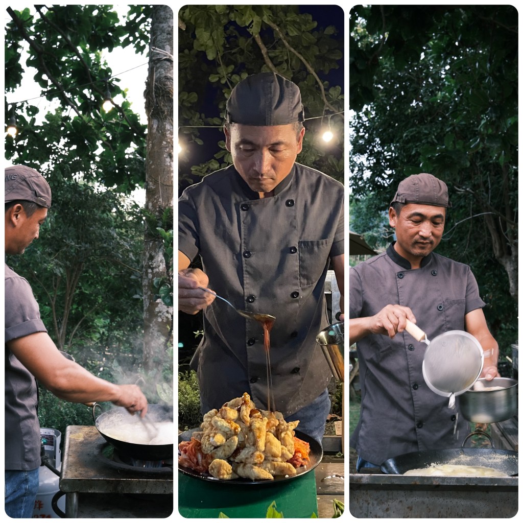 傍晚時分,充滿綠意的庭院中,慵懶的音樂流瀉空氣中,負責掌勺的有間小店型男主廚阿宏早已準備就緒,看到那陣仗的當下,讓我有種不知身在何處的飄飄然感。